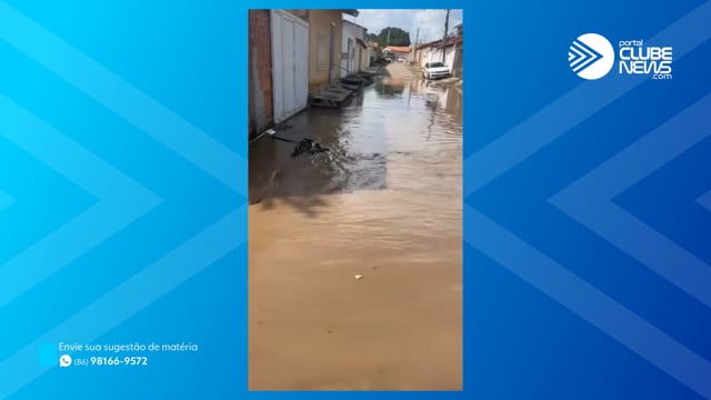 Homem banha em rua que alagou após forte chuva no Sul do Piauí
