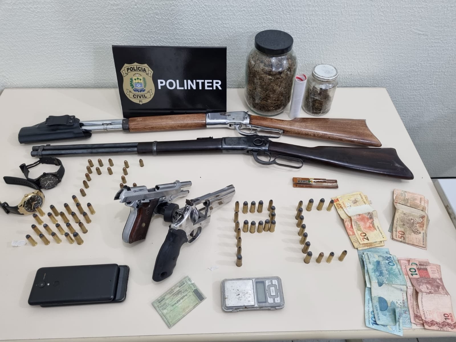 Duas pessoas foram presas e quatro armas de fogo apreendidas durante operação da Polícia Civil do Piauí, deflagrada nesta quarta-feira (4) em Teresina. A ação ocorreu na zona Norte de Teresina no combate a roubo de veículos e em residências.