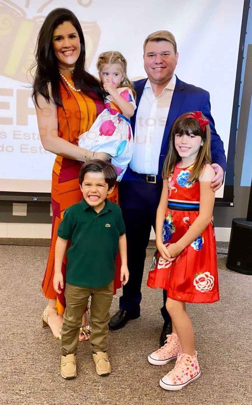 Na foto, o presidente com sua família, a esposa Danuta Coelho e os filhos Maria Ângela, Sara e Leozinho.