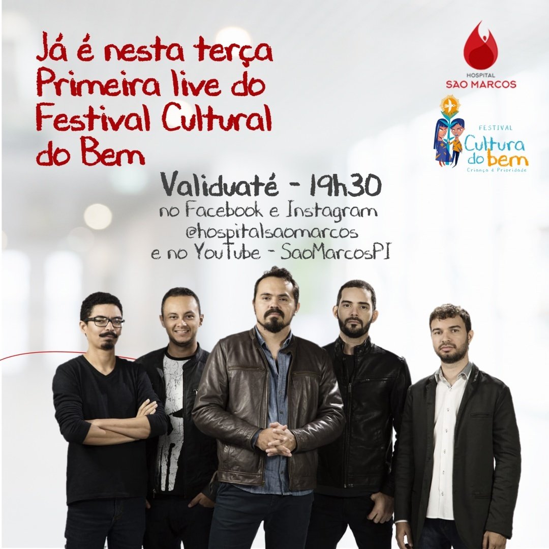 Uma das maiores bandas musicais do Piauí, Validuaté, inicia as Lives Solidárias do II Festival Cultura do Bem, nesta terça-feira (05), às 19hs, direto do Palácio da Música, com transmissão ao vivo pelas redes sociais do Hospital São Marcos.
