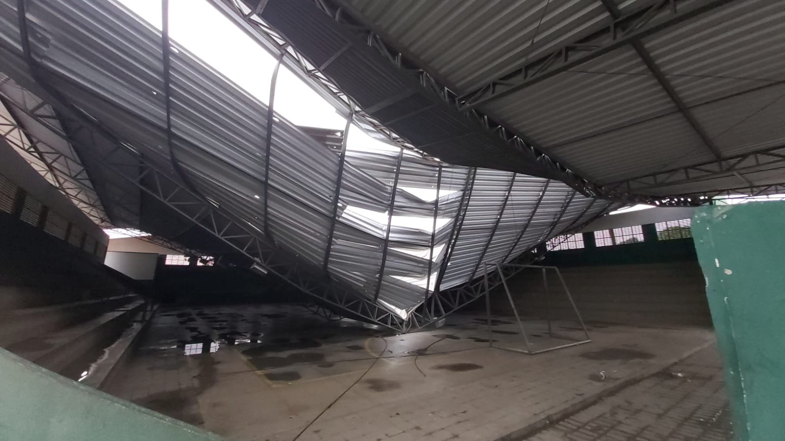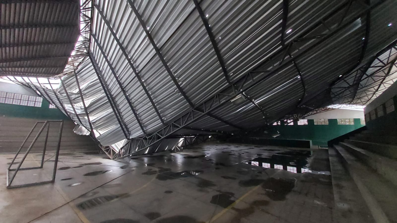 O teto do ginásio poliesportivo João Tataira, na região central da cidade, desabou durante o temporal que caiu em Água Branca, 98km de Teresina, na tarde desta sexta-feira (15).