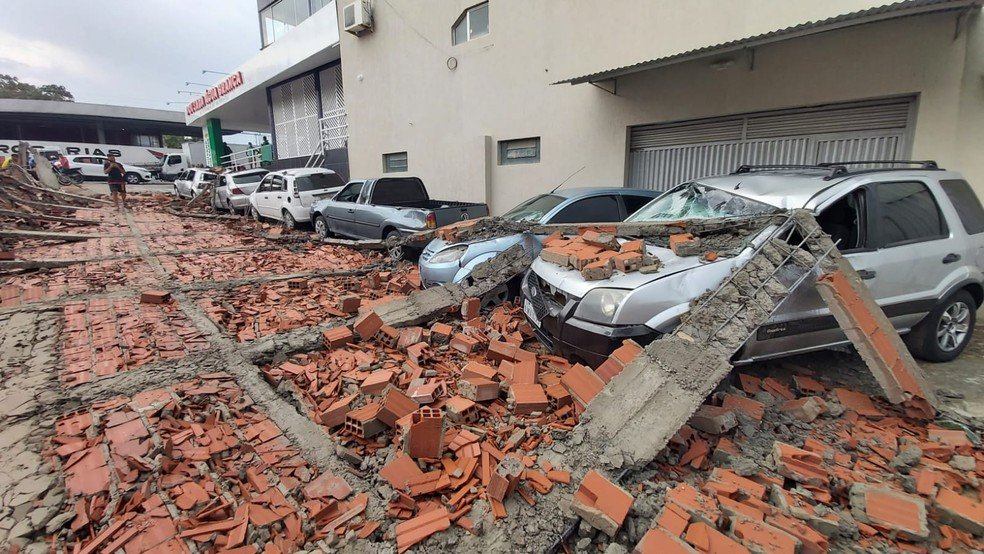 A chuva causou diversos estragos na cidade. Na Avenida Neco Teixeira, um muro de um galpão em construção caiu e atingiu seis carros estacionados. Os veículos ficaram amassados e com os vidros quebrados.