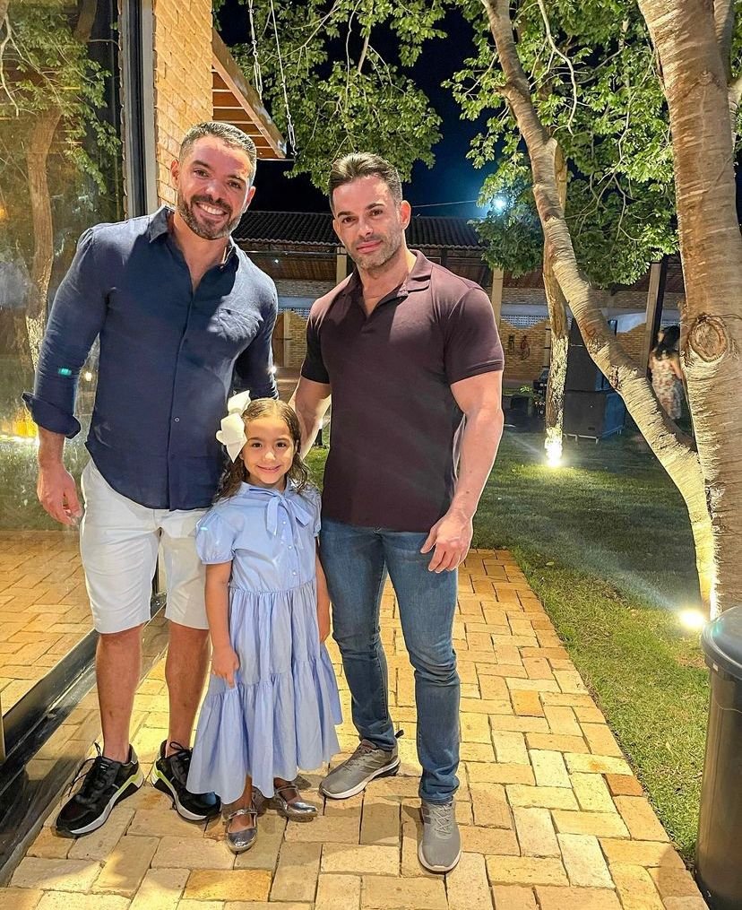 Na foto com seus pais Marcela Coelho e Eduardo Uchôa.