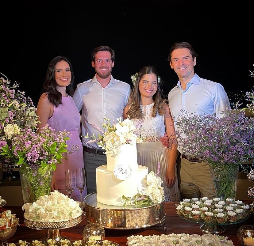 No registro, os noivos com Alexandre Magalhães e Mariana Santos Magalhães.