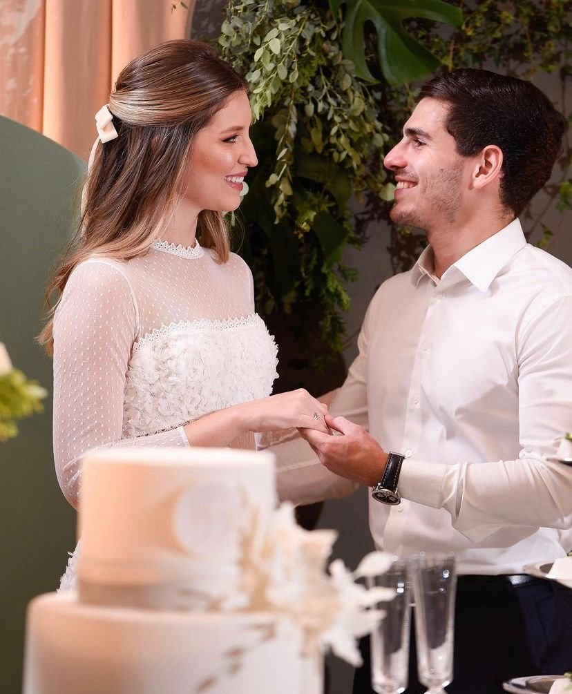 Renata Magalhães Pinheiro e André Bortolozzo noivaram na noite do último sábado, em uma linda cerimônia entre familiares e amigos.