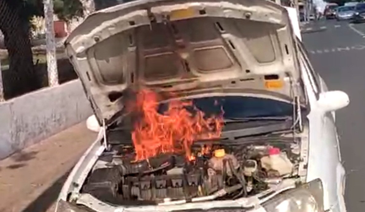“Quando eu parei e abri o capô, já estava pegando fogo. Pedi ajuda das pessoas que estavam aqui perto e conseguimos apagar”, disse o condutor.