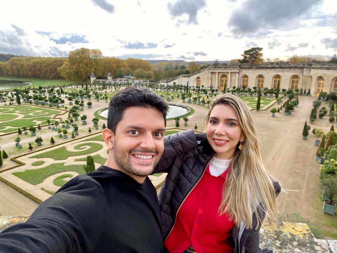 Os recém casados Cristine Paiva e Júlio César Sá diretamente do Jardim de Versailles em Paris.