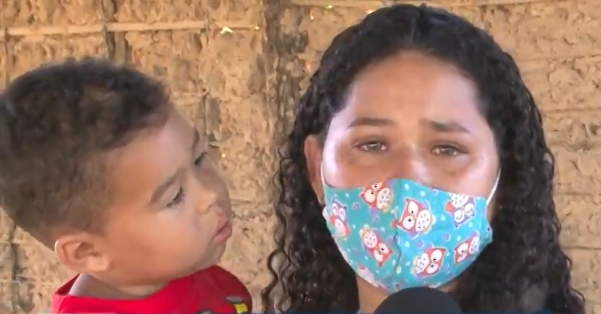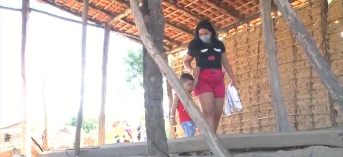 A mãe conta que não tem casa nem renda adequada para se manter com a criança. A casa deles, construída com barro, desabou há seis meses após uma série de temporais. No local da casa restou apenas a estrutura de madeira que sustenta o telhado. Sem ter onde morar, mãe e filho recorreram à casa de um conhecido, mas o proprietário está pedindo a desocupação do local.