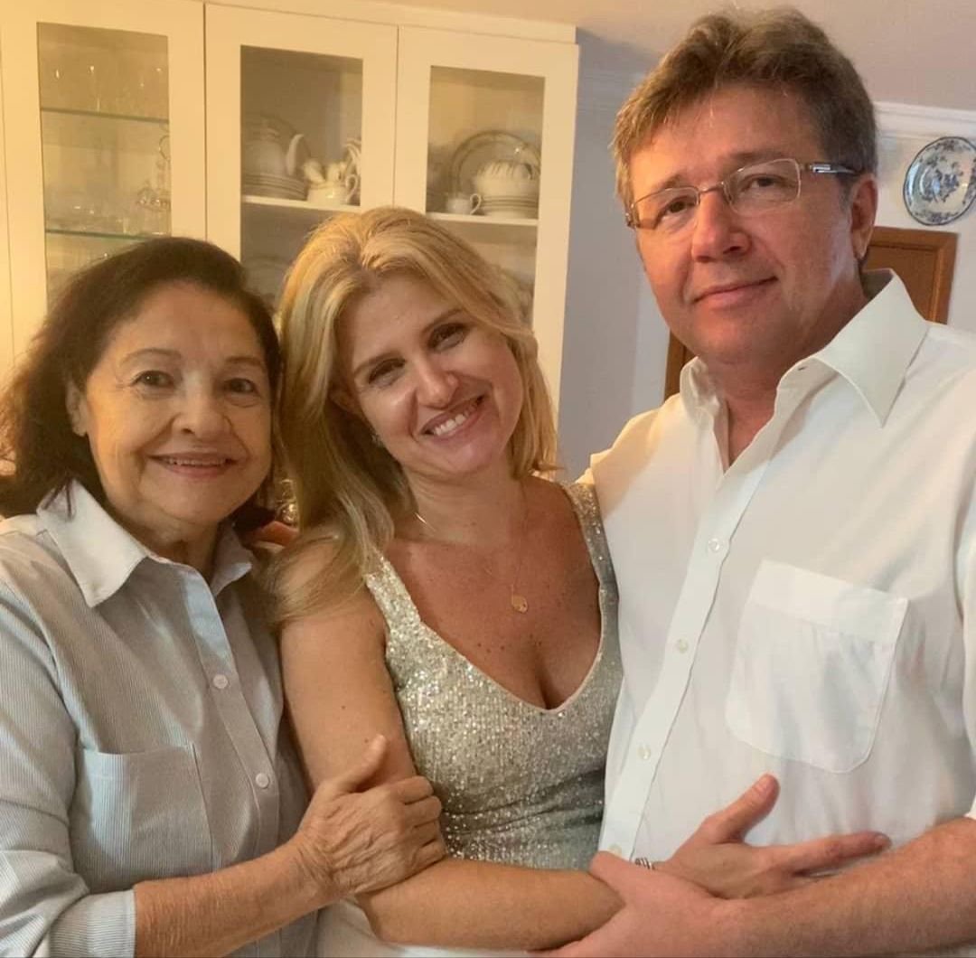 Juliana Martins emoldurada por sua mãe Fátima Carvalho e pelo marido Júnior Carvalho.