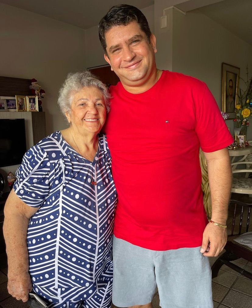 Gustavo Gaioso em visita a sua avó paterna, Teresinha Fortes Gaioso, a querida Tetê.