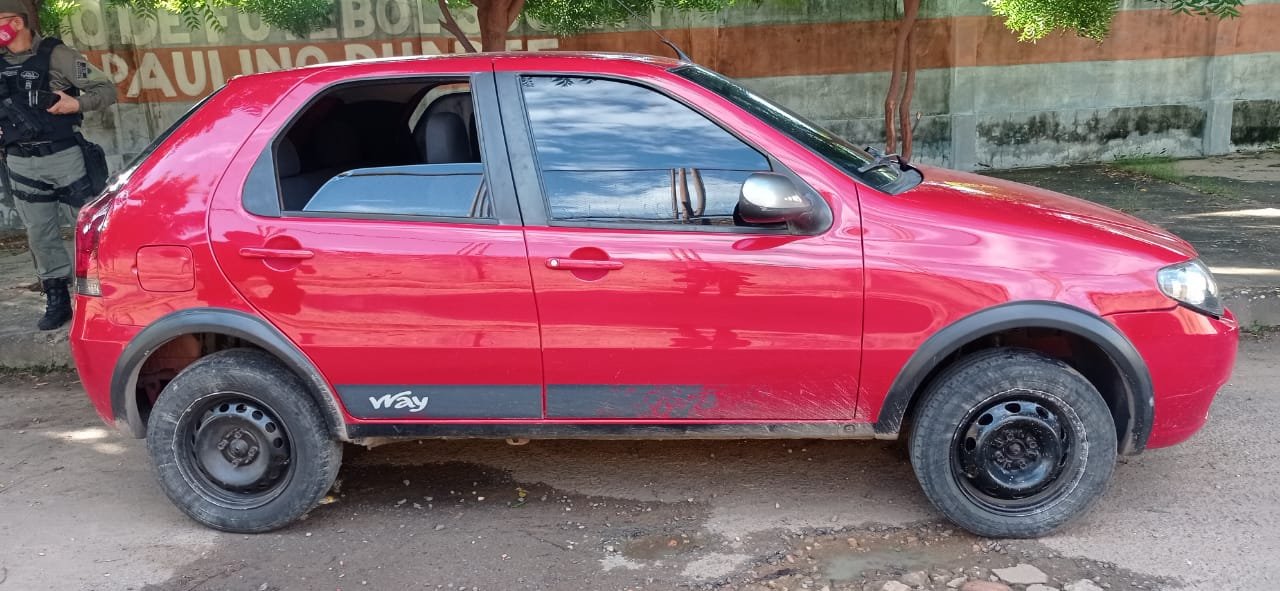 Um veículo roubado modelo Palio foi recuperado pela Polícia Militar na tarde desta quarta-feira (12), no Residencial Fortes. Dentro do carro estava também um conjunto de roupa da Eletrobrás, além de um jaquetão e dois celulares.