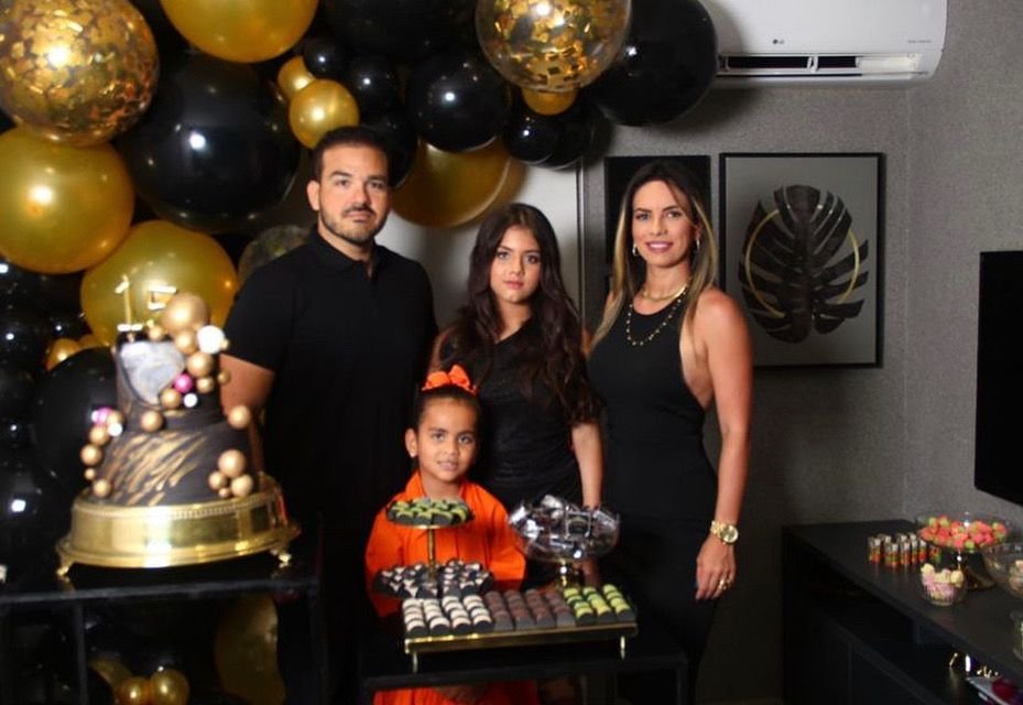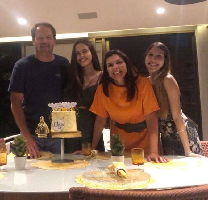 Letícia Guerra comemorando seus 15 anos ao lado de seus pais Inaldo Guerra Neto e Lennara Guerra e da irmã Luiza Guerra.