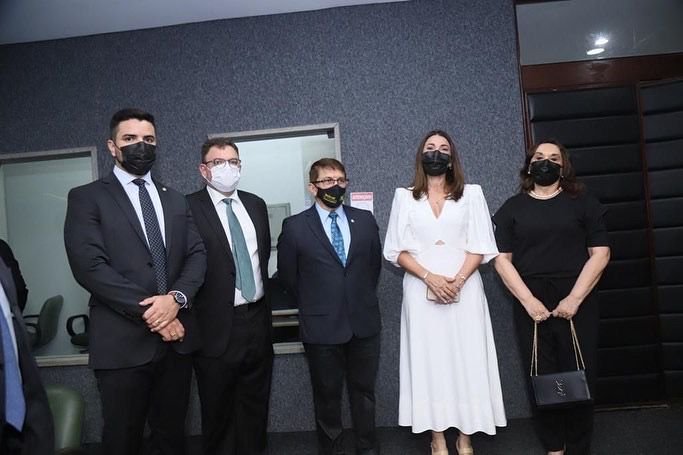 No flash, Pedro Nogueira Lima ladeado do vereador Aluísio Sampaio, do Presidente do Conselho Federal dos corretores João Teodoro, da Deputada Federal Margarete Coelho e da Senadora da República Eliane Nogueira Lima.