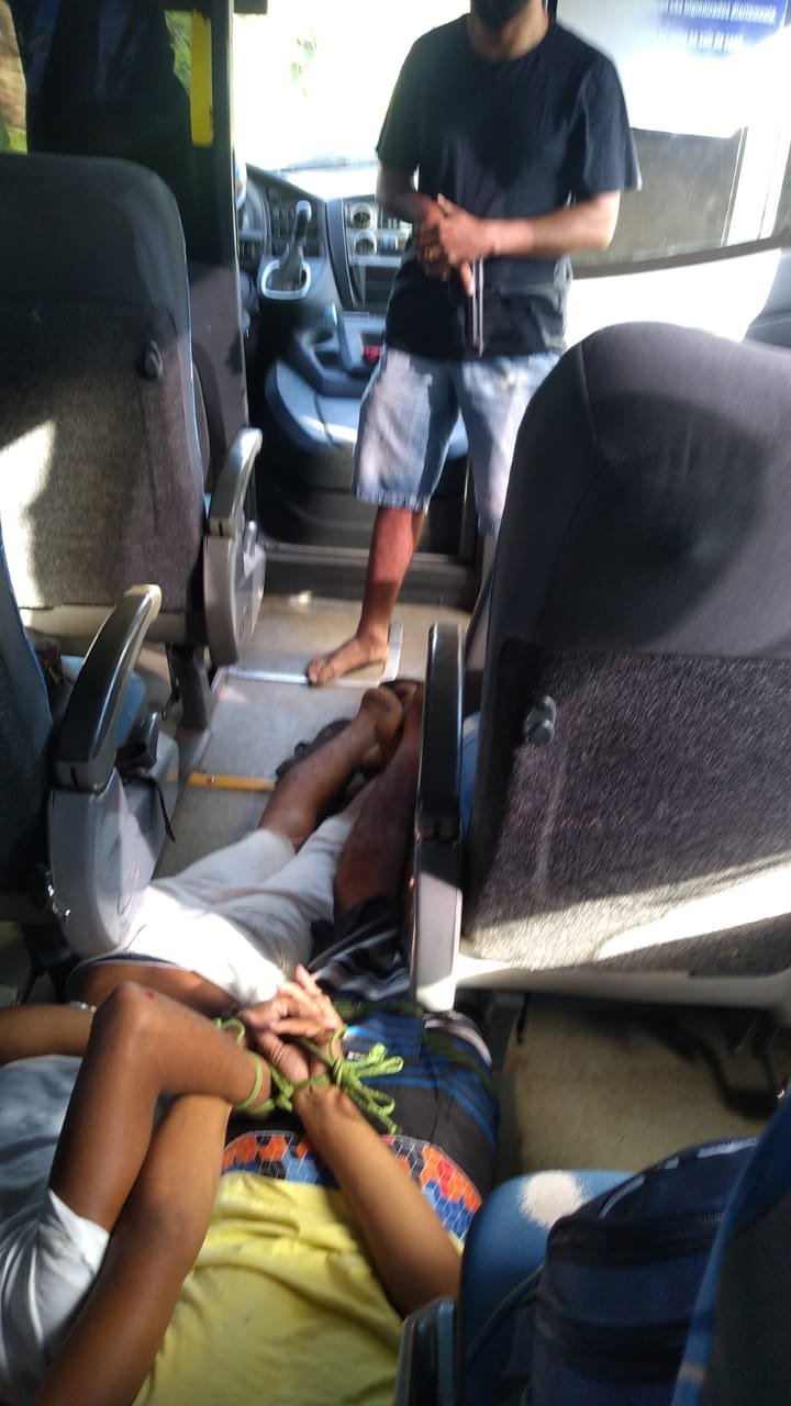 Eles estavam com duas armas brancas (facas) e subiram no ônibus no povoado São Vicente, ainda em Teresina.