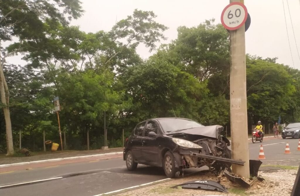 Motorista atinge poste na Av. Marechal Castelo Branco e foge do local
