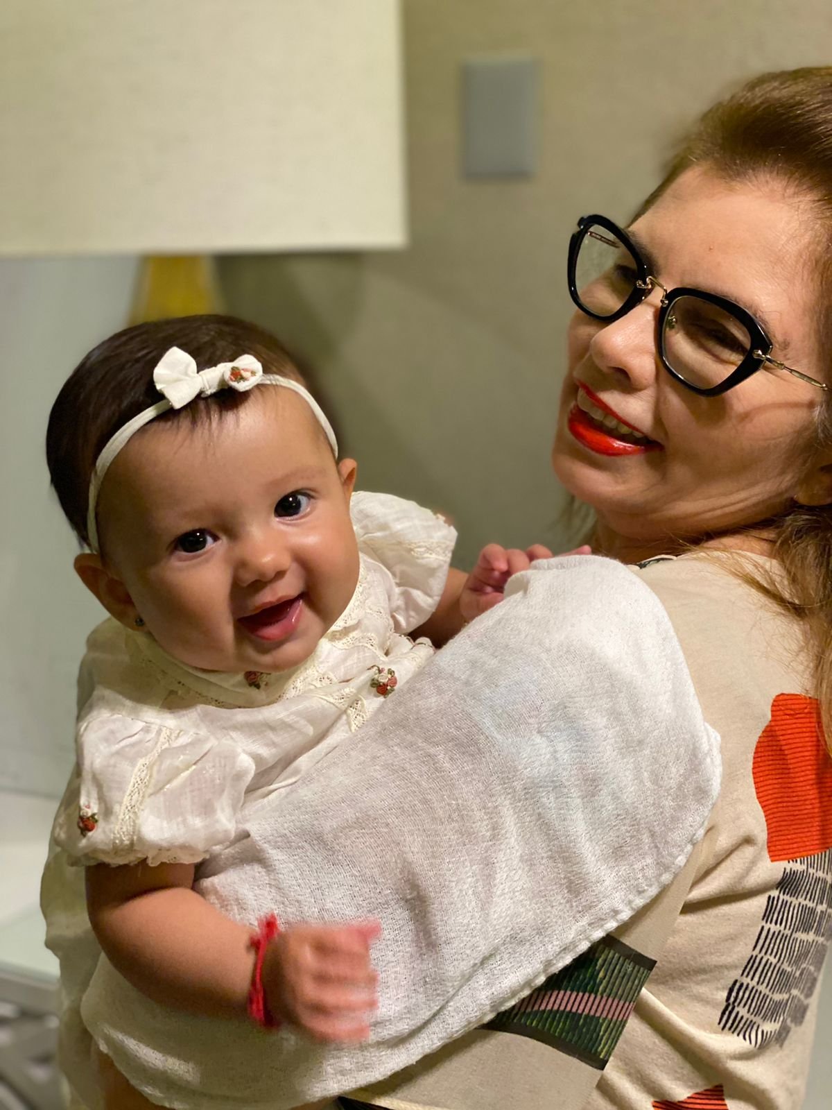 A fofíssima Maria de Fátima Macêdo Neta no colo de sua tia-avó, a chique Losanne Paulo.