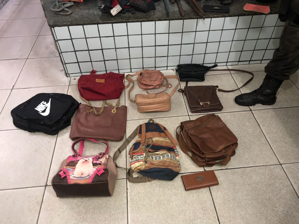 Agentes recolhem 14 bolsas femininas tomadas em assalto (Foto: reprodução)