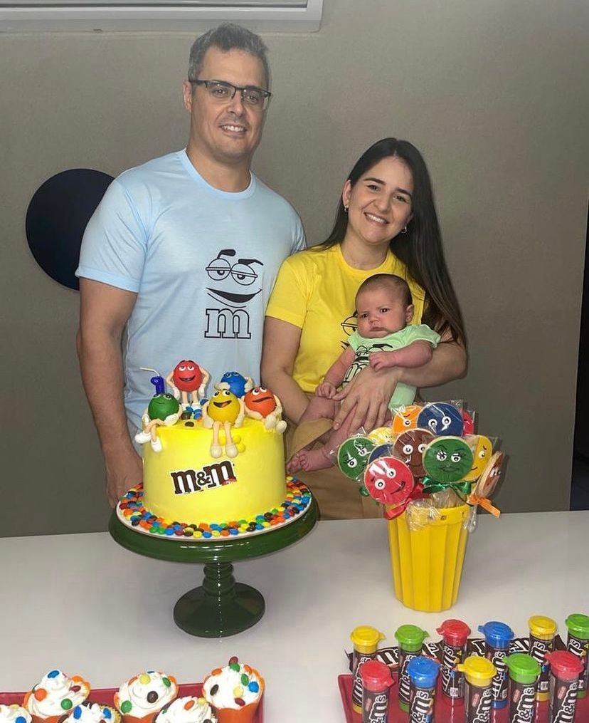 A médica Lorena Chaib e o delegado Tales Gomes festejando o primeiro mês do filho Álvaro.