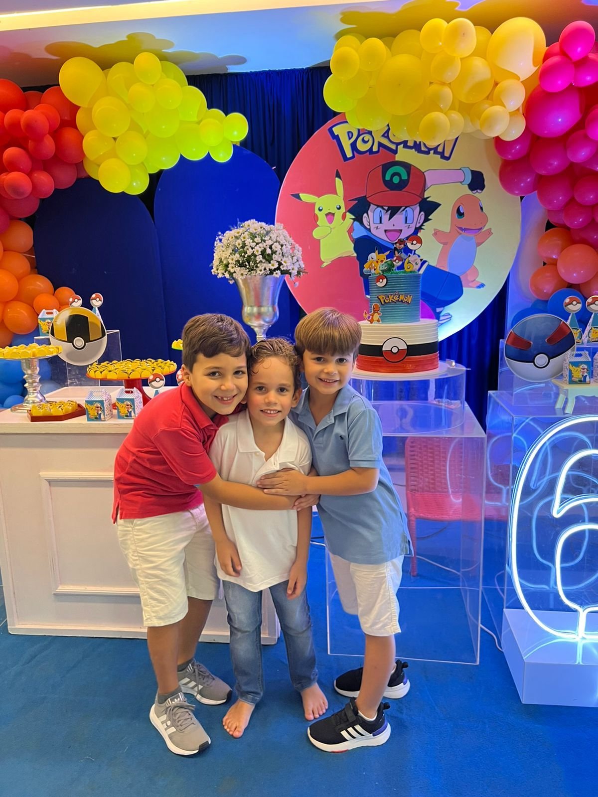Os irmãos Kleber Neto e Lucas festejando os 06 anos do primo José Pedro.