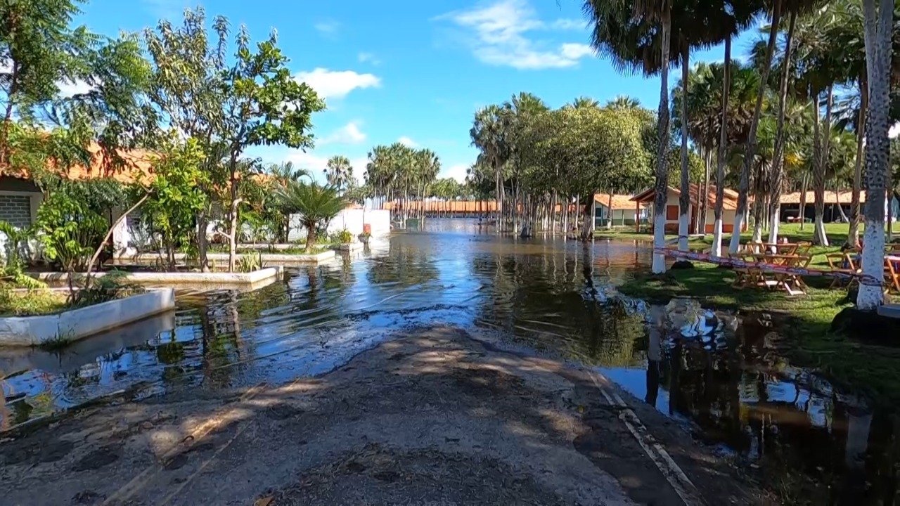 Vídeo: água da Lagoa do Portinho transborda e invade área de restaurante; previsão de mais chuvas