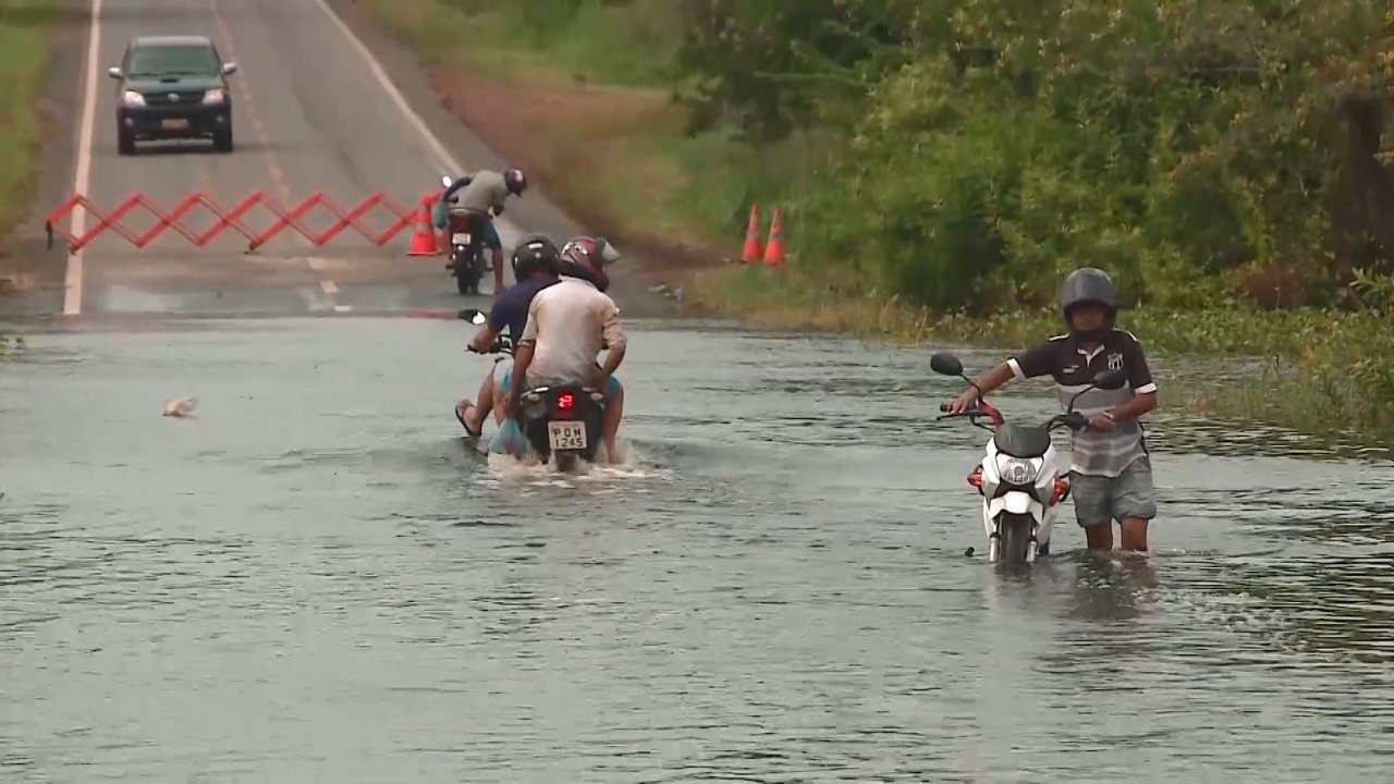 Lagoa do Portinho: água invade trecho da BR-402 e PRF alerta para risco de rompimento da pista