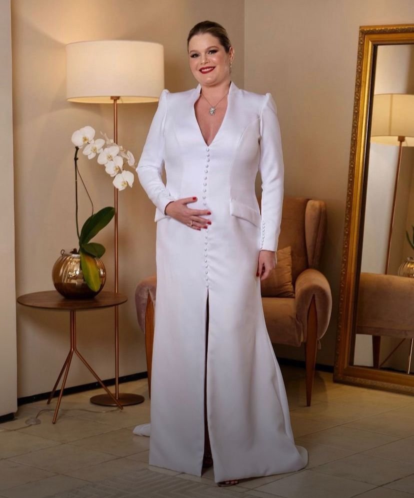 A linda Maria Carolina Carvalho de Almendra Freitas pronta para cerimônia do seu casamento que aconteceu na noite do último dia 1º, em buffet da zona leste.