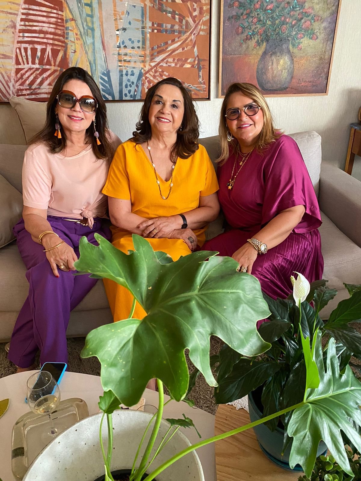 No flash, a anfitriã com as amigas Fernanda Portela Carneiro e Eliane Nogueira.