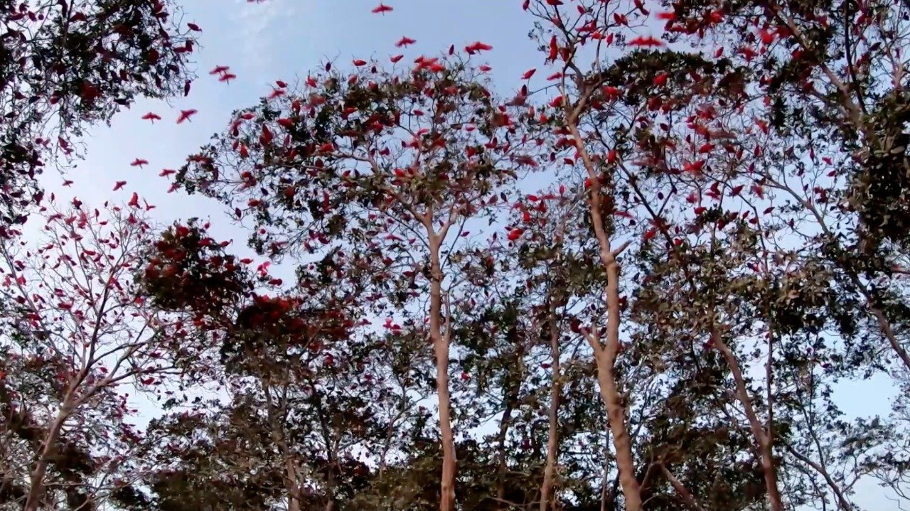 Já os guarás são pássaros – também de cor vermelha – que dividem moradia nos mangues com os maraconis. Essa espécie de caranguejo é rico em caroteno, substância que imprime a cor vermelho-escarlate nas aves.