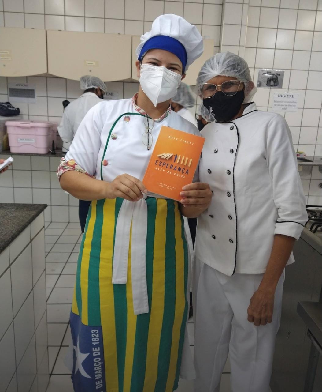 A professora Mariana de Morais Sousa na cozinha envolta na bandeira do estado do Piauí. (Foto: arquivo pessoal)