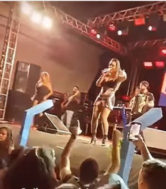 Vídeo: cantora cai do palco durante show da banda Forró dos Plays no Piauí