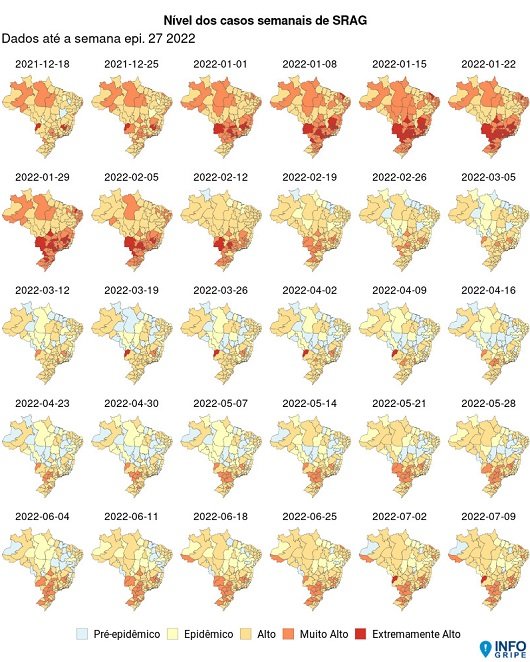A previsão foi constatada nos cálculos de tendência a longo prazo – observando as últimas seis semanas. A análise foi realizada na Semana Epidemiológica (SE) 27, que compreende os dias de 3 a 9 de julho, e tem como base os dados inseridos no Sistema de Informação da Vigilância Epidemiológica da Gripe (Sivep-Gripe) até 11 de julho.