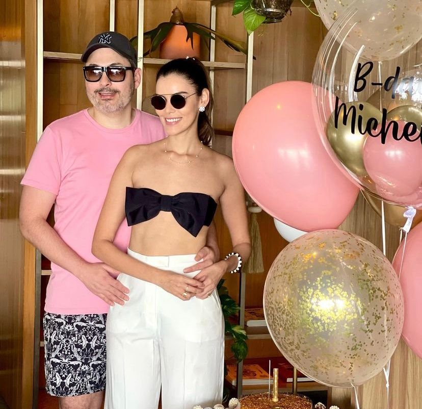 A médica dermatologista Michelle Martins, aniversariante deste domingo recebendo o carinho e o amor do seu esposo, o médico dermatologista Thales Bastos no Rio de Janeiro onde passam a data.