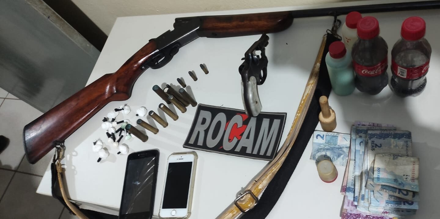 Na residência foram encontradas duas armas e mais oito invólucros da mesma substância.