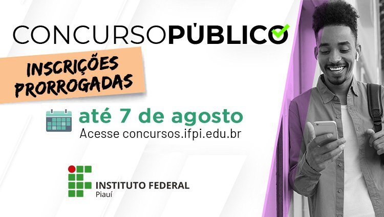 O Instituto Federal do Piauí (IFPI) ampliou o prazo de inscrição nos concursos para professores e técnicos-administrativos em educação. Com a mudança, os interessados poderão se inscrever até 7 de agosto, no endereço eletrônico https://concursos.ifpi.edu.br.