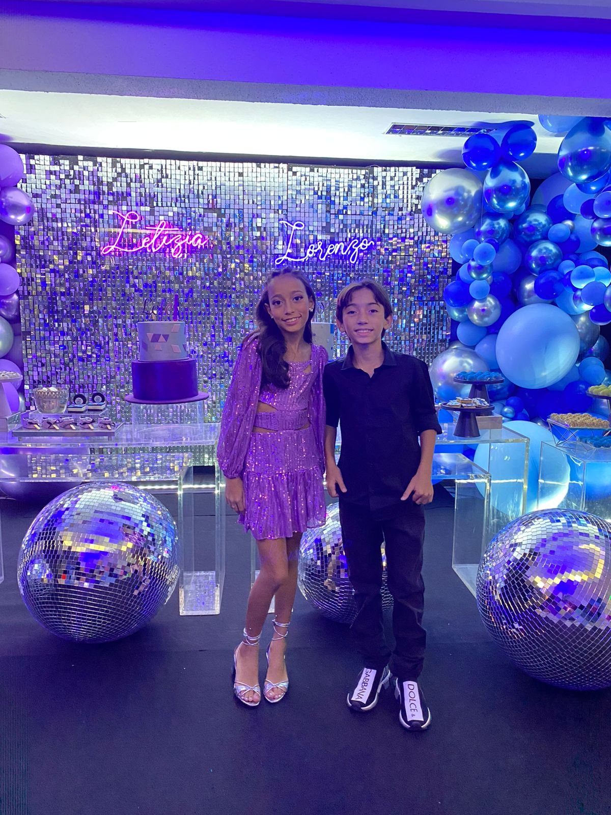 Os gêmeos Lorenzo e Letízia festejaram seus 11 anos na noite do último sábado com balada.
