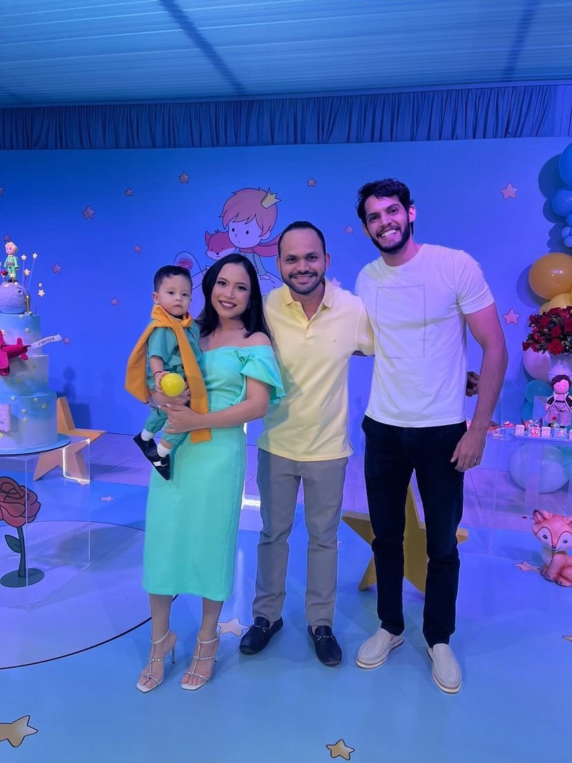 O Secretário Municipal de Comunicação Social de Teresina, Lucas Pereira e sua esposa Lana Cavalcante festejando o primeiro ano do filho Frederico em buffet infantil da zona leste.