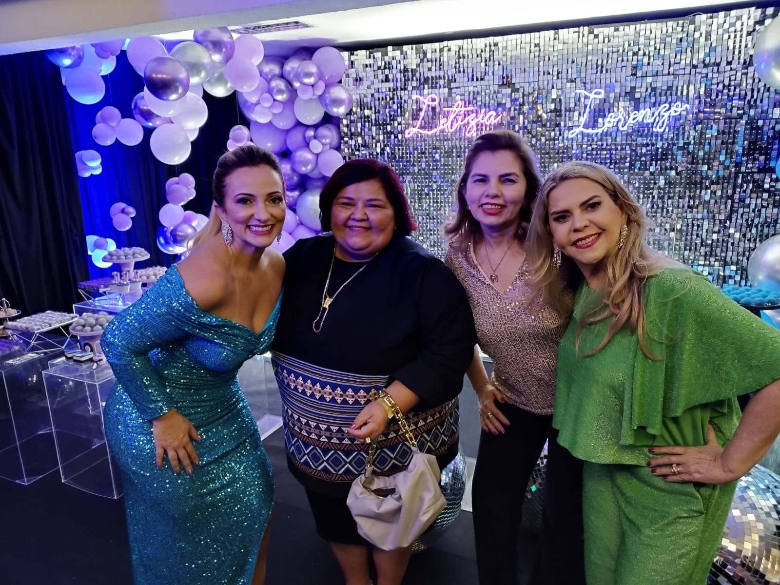 Olívia Nogueira, Célia Santiago, Losanne Paulo e France Mary Oliveira clicadas no aniversário do gêmeos Lorenzo e Letízia.