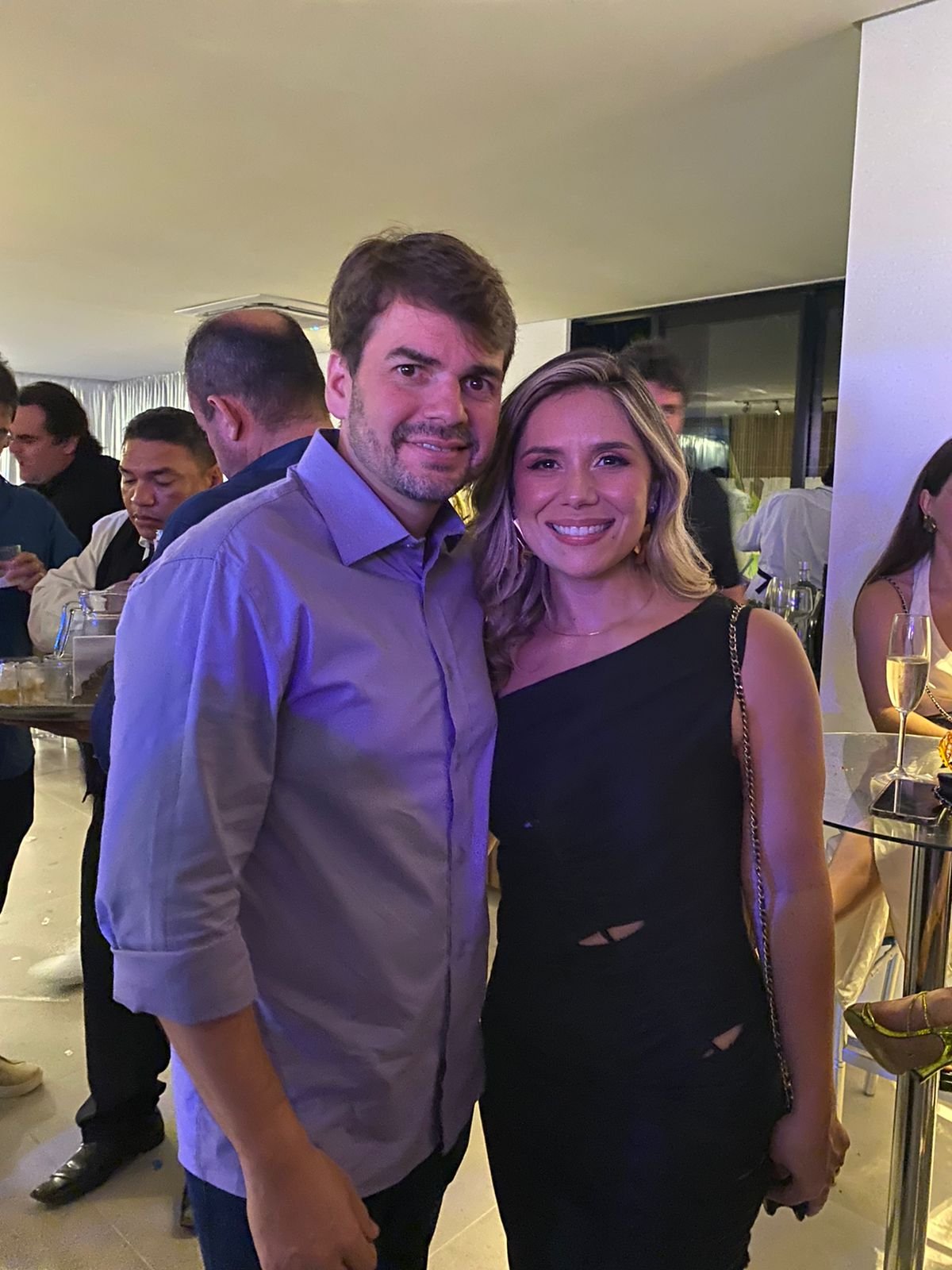 O médico Alexandre Sampaio e a dentista Lorena Andrade Sampaio em evento badalado.