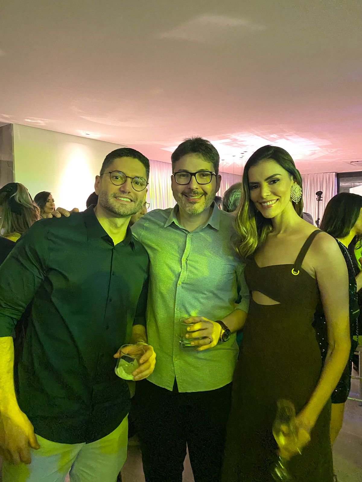 Os dermatologistas Victor Martins, Thales Bastos e Michelle Martins festejado a vida de Waleska Macêdo.