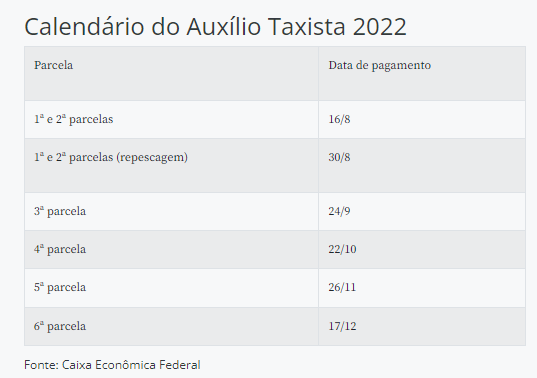 Os caminhoneiros que fizeram a autodeclaração até 12 de setembro receberão as parcelas de julho e de agosto com a parcela de setembro, totalizando R$ 3 mil. Em relação aos taxistas, haverá o pagamento apenas da parcela de setembro porque a repescagem da parcela de julho foi paga no fim de agosto aos municípios que atrasaram o envio dos cadastros ao governo federal.