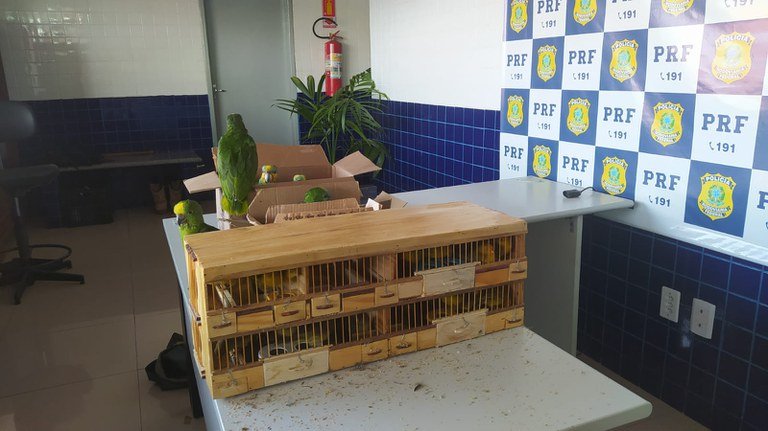 PRF resgata 48 aves transportadas embaixo de poltrona de um ônibus na BR-230