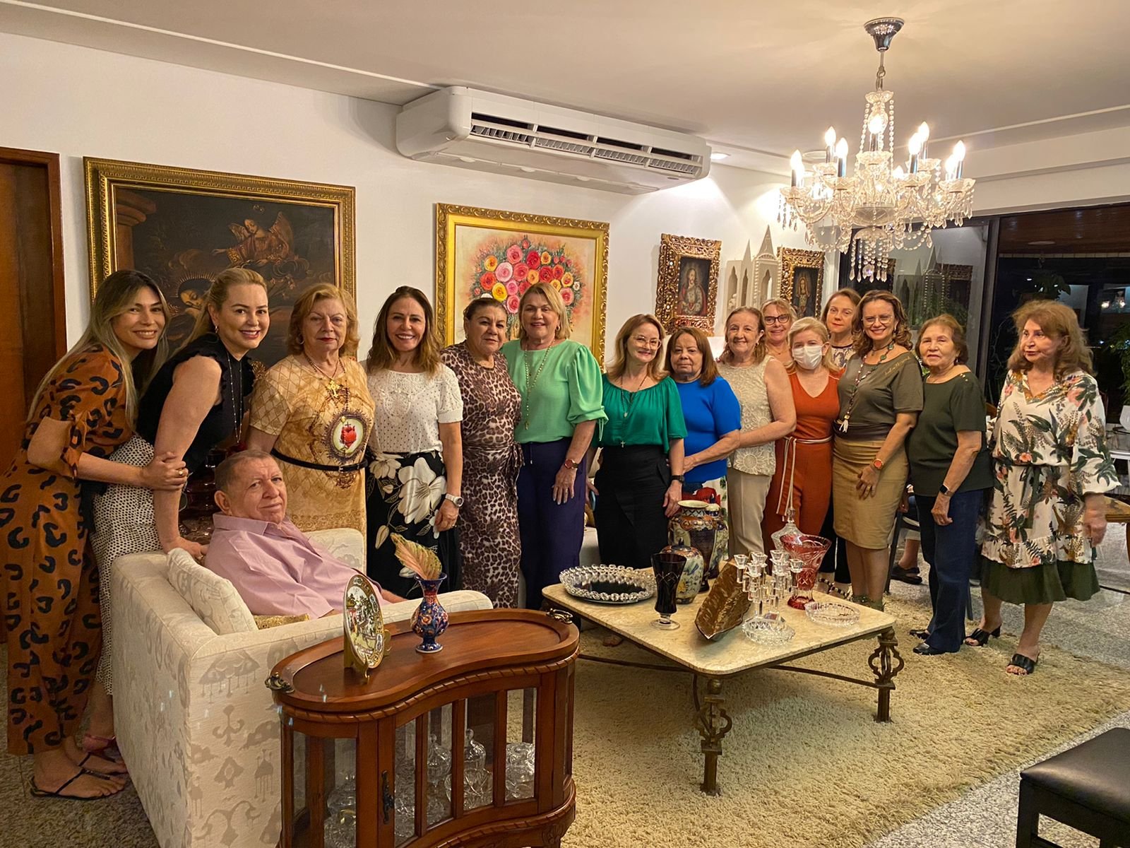 O querido casal de médicos Lino Ribeiro e Solange Silveira Ribeiro recepcionando a turma do Santo Terço em seu apartamento.