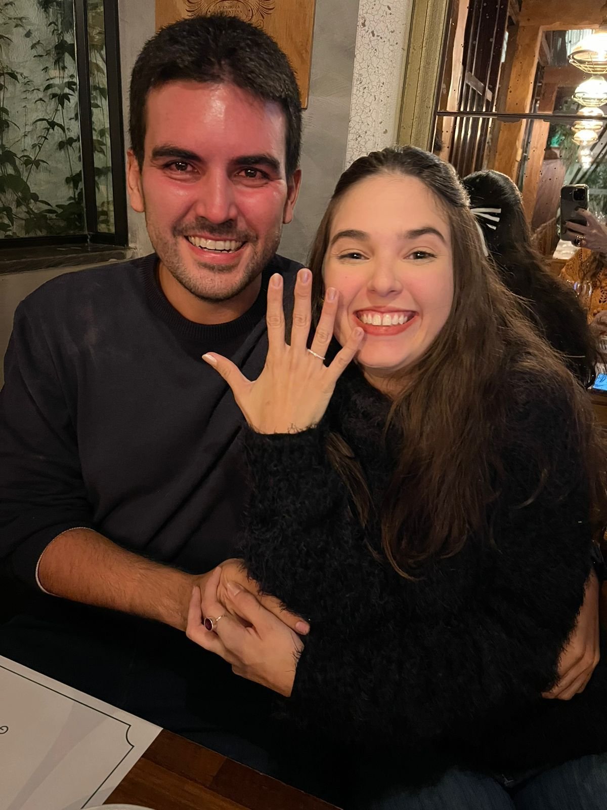 A arquiteta Júlia Amélia Fonseca e o engenheiro Carlos Estevam Pires Rebelo Neto noivaram durante viagem familiar por Foz do Iguaçu.