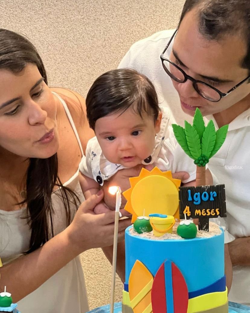 O lindo Igor comemorando seus 04 meses de vida ao lado de seus pais Samila Teixeira e Igor Lira.