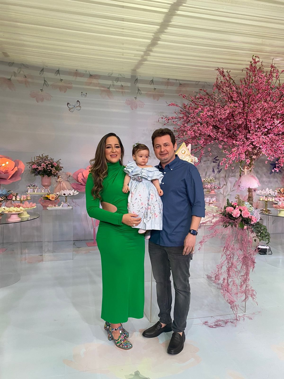 A arquiteta Carla Pádua e o empresário Reynaldo Veras festejando o 1º ano da filha Valentina.