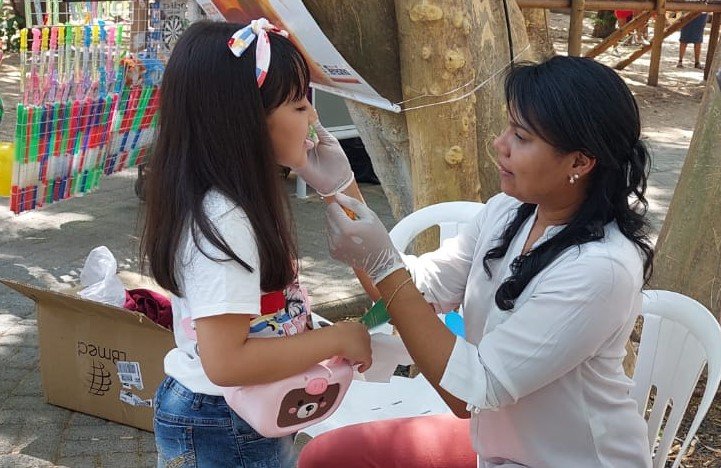 A Fundação Municipal de Saúde (FMS) participa com serviços de saúde bucal. Serão distribuídas escovas dentais e feita aplicação tópica de flúor. A gerente de Saúde Bucal da FMS, Kaline Brandão, destaca que as crianças interagem bem no momento em que os profissionais estão dando as orientações.