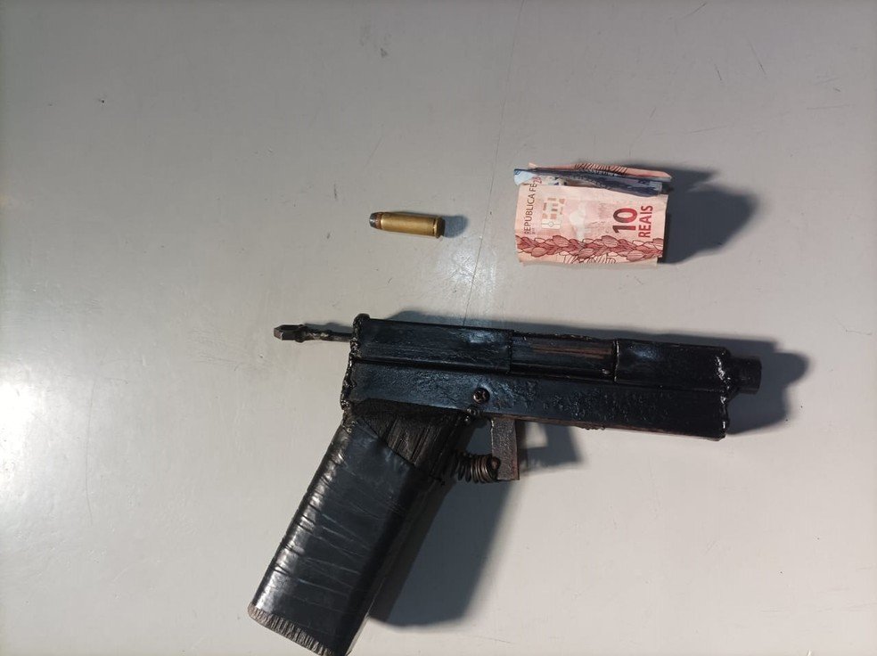 De acordo com informações repassadas pelo 5º Batalhão da Polícia Militar, a própria namorada foi quem acionou a PM. Ao chegarem no local, os policiais encontraram uma arma de fabricação caseira dentro de uma mochila que estava com o acusado.