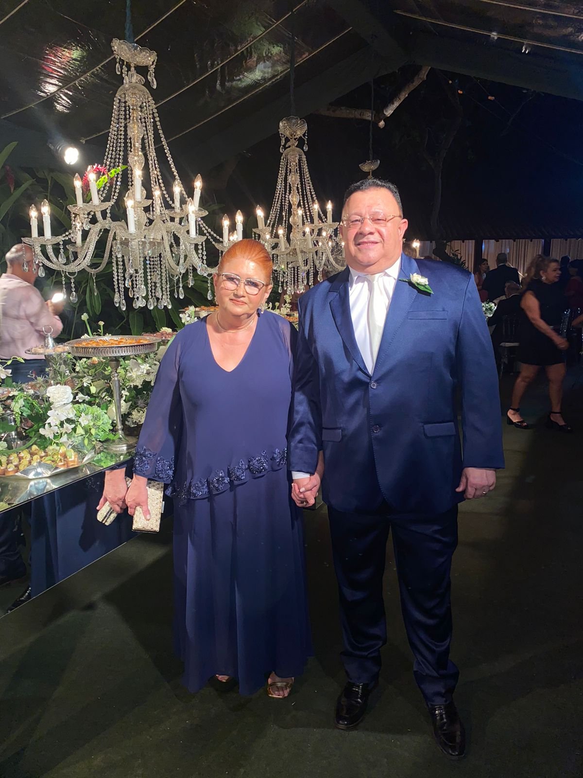 Os pais do noivo, Agnaldo Camillo da Silveira e Maria Joacle Matos Silveira em celebração de muito amor.
