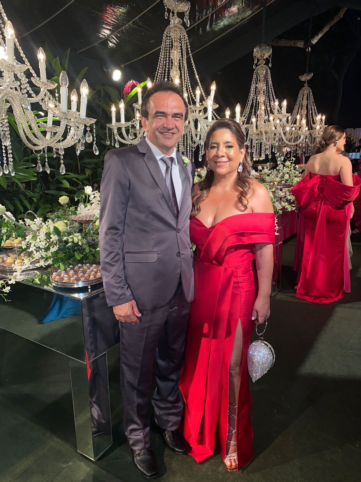 Os pais da noiva, Elizeu Aguiar e Katia Rejane Soares Aguiar em pose para nossa coluna.