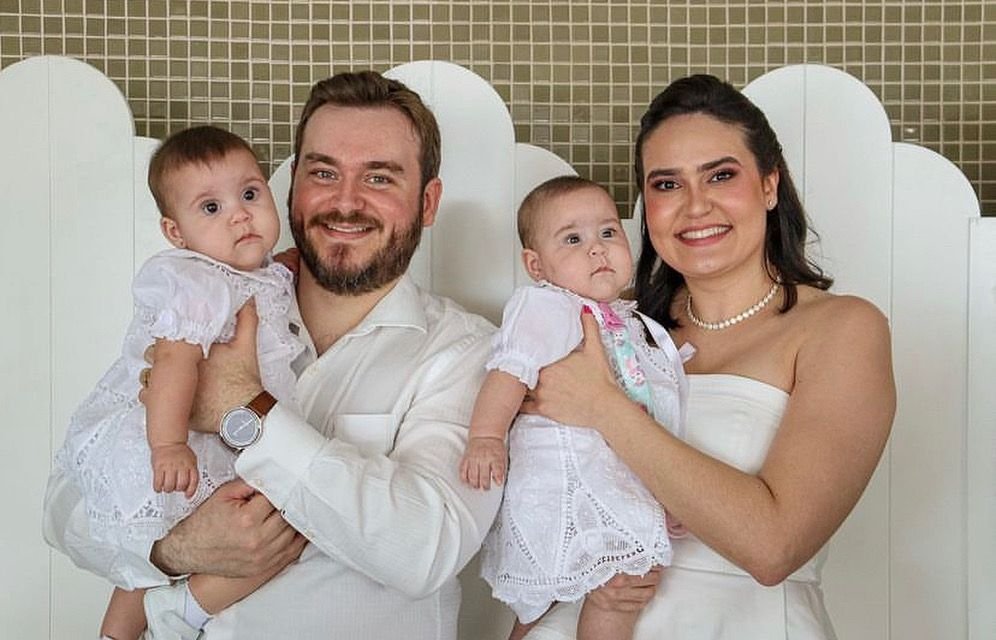 O casal Bruno Monte e Ana Cristina Alexandrino Monte batizaram as filhas Júlia Maria e Laura Maria no último final de semana.